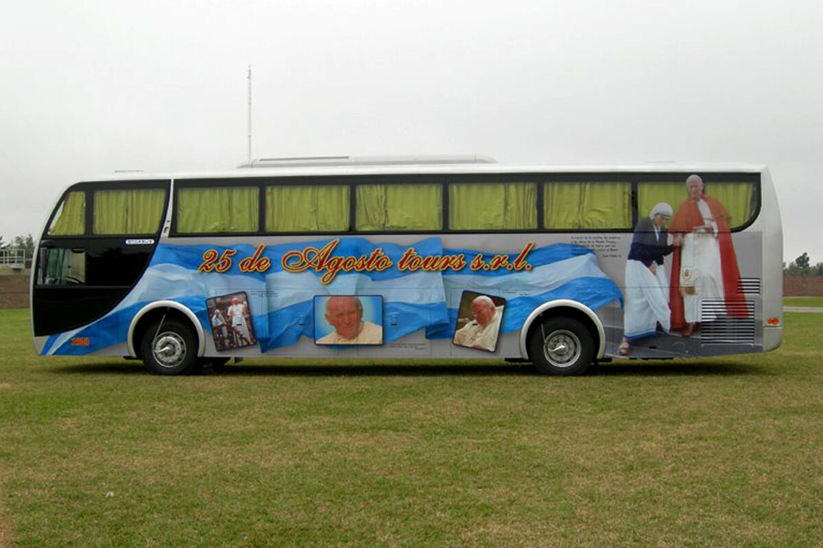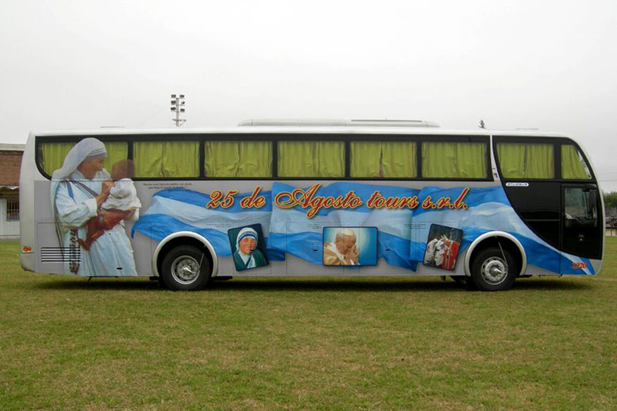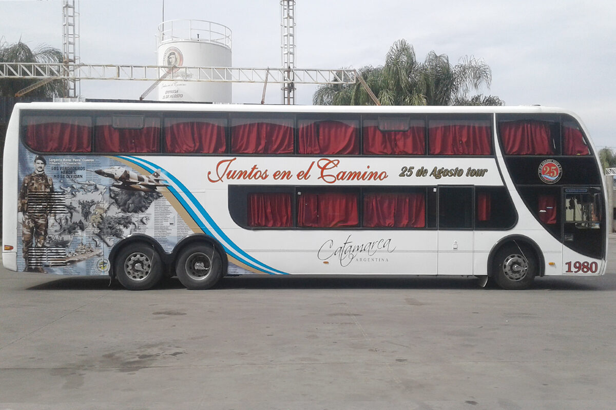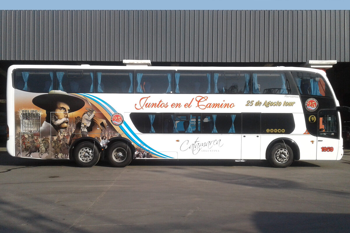 Somos una empresa con más de veintisiete años de experiencia en el sector del transporte de pasajeros, que continuamente nos tecnificamos y modernizamos para lograr una anhelada misión, la de brindar un servicio de transporte seguro, confiable y eficiente. Para nosotros la imagen y la temática de las unidades es de vital importancia, ya que nos permite comunicar a la sociedad nuestros valores. Hay una serie de unidades que destacan personajes de la historia y cultura catamarqueña, como así también figuras o hechos relevantes para los argentinos. El artista catamarqueño Pablo Martinena, reconocido internacionalmente, ilustró algunas unidades que honran la figura emblemática de Felipe Varela, ícono de la causa Federal y de la Autonomía de Catamarca, y la figura del Beato Fray Mamerto Esquiú por su contribución en la defensa de los derechos y la comunicación. Fue beatificado en el 2021.